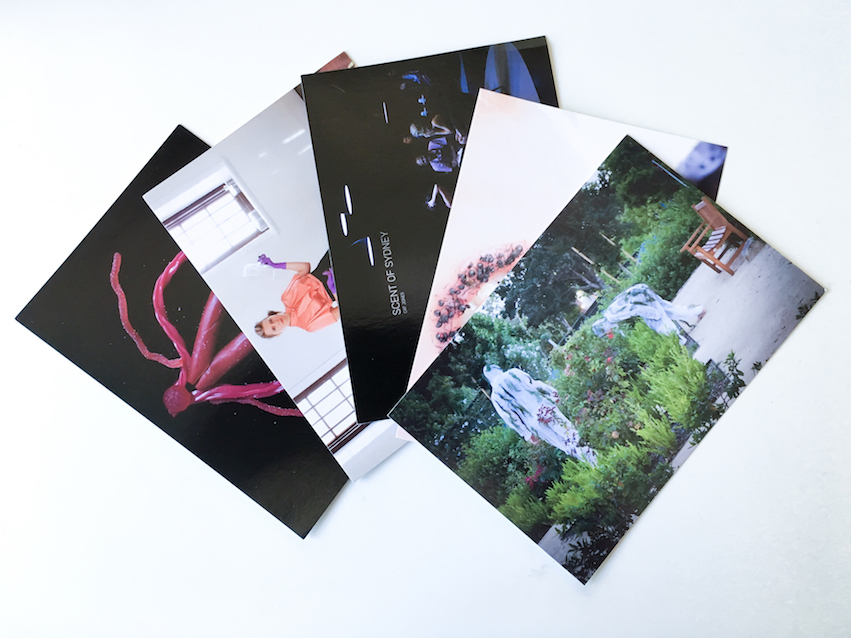 Set of five postcards from Cat Jones projects including Anatomy's Confection (2), Insecta Delecta, A Walk [With Herbivores], Scent of Sydney. Price includes postage within Australia.